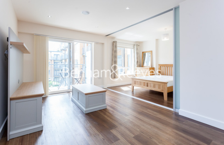 This apartment offers a large living area with sliding panels separating the living room from the bedroom, an open plan fitted kitchen leading onto a private balcony and a three-piece modern bathroom with power shower.